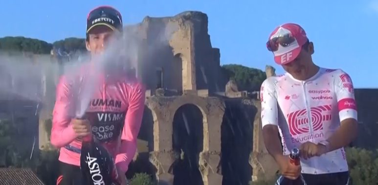 E’ l’inglese Simon Yates, 32 anni, il vincitore del Giro d’Italia, 2025. Yates diventa così il terzo britannico dopo Froome nel 2018 e Hart nel 2020 a vincere il Giro. In classifica generale chiude poi secondo Del Toro, staccato di 3’56 e terzo Carapaz a 4’43. Primo degli italiani Damiano Caruso quinto a 7’32. Sesto poi Giulio Pellizzari a 9’28. Un’ultima tappa che ha visto il trionfo dell’olandese della Visma-Lease Olaf Kooj, 23 anni, che si era già imposto a Viadana e nel 2024 a Napoli e ha preceduto l’australiano Kaden Groves e Matteo Moschetti. Una tappa l’ultima che resterà nella storia anche per il passaggio nella Città del Vaticano e l’incontro con Leone XIV, come era avvenuto anche con Pio XII, Paolo VI e Giovanni Paolo II tutti in epoche diverse. Centinaia di migliaia i tifosi e gli appassionati, affollavano il Colosseo come la Roma imperiale e quella storica, sotto un sole già estivo. Che ha lasciato tutti senza fiato. Per un Giro che si è concluso così alla grandissima e che ha coronato dopo una rimonta incredibile nella penultima tappa sul Sestriere Simon Yates come maglia rosa e vincitore finale.
